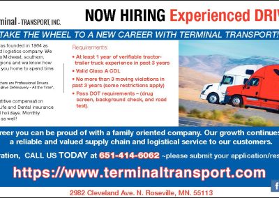 Terminal Transport Personnel are actively involved and take personal interest in making sure that all of our services are completed to your satisfaction. Our staff has contributed immeasurably to our success and will work to succeed in achieving the same goal with each & every shipment.